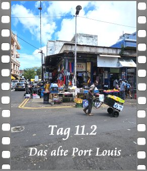 7.11. Nach ausgiebigem Studium der Wettervorhersage haben wir uns für Port Louis entschieden. Das heißt gleich in der Früh losfahren, denn ab Mittag soll es wieder regnen. Die Stadt ist ein großartiges Gemisch aus alt und modern - oft ganz nah beieinander, ein lebhaftes Gewusel verschiedener Ethnien und Touristen. Diesmal sind wir einige Stunden unterwegs und haben einen guten Gesamteindruck (neu entdeckt) von der ganzen Stadt (inklusive Drohnenflug - zum Video), nur die Festung geben wir uns nicht, die sieht von unten schon hässlich aus Bei unserer Rückfahrt beginnt sich der Himmel zu verdunkeln und als wir in Quatre Bornes total im Stau stecken geht es so richtig los, Wolkenbruch sogar mit etwas Hagel - wir stehen gerade unter einer Autobahnbrücke :-) In Tamarind ist dann die Straße total überschwemmt, die Menschen hier sehen das eher gelassen. _________________________________