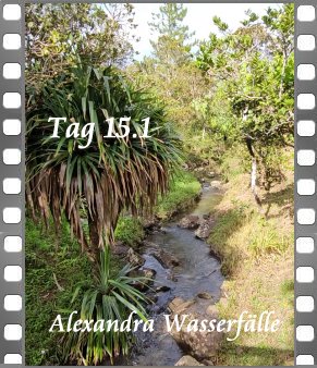 11.11. Heute holen wir die versäumten Drohnenflüge nach. Wenn es wieder regnet wird das Material zu schönen Videos verarbeitet werden. Bei den Alexandrafällen haben wir besonderes Glück. Wir sind sehr früh unterwegs und nur 3 Radfahrer*innen sind am Aussichtspunkt, den Park haben wir für uns alleine. Nach getaner Tat (Drohnenflug und Handyaufnahmen) werden wir schon sanft aber bestimmt hinaus gestampert - der gesamte Park ist nach wie vor wegen der vergangenen Unwetter gesperrt, aber wir haben schon alles im Kasten. Weiter zu den Tamarind Kaskaden und es tröpfelt schon wieder. Als wir dort ankommen machen die Wolken ein Stückchen auf und Licht scheint auf die Wasserfälle - große Freude. _________________________________