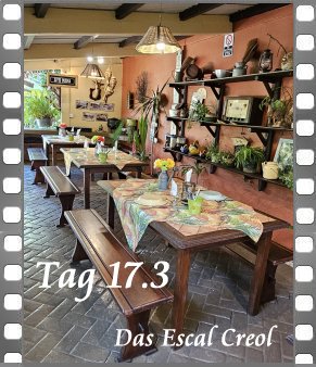 28.11. Heute ist Ottos Geburtstag. Wir haben schon seit Wochen im Escale Creole gebucht, machen uns hübsch und fahren durch "Neuland" nach Moka. Dieser Tag hat gleich zwei tolle Geburttagsüberraschung für meinen Liebsten parat: zuerst die Landschaft, durch die wir bei beginnendem Gewitter fahren - total schön. Wir nehmen in jeden Urlaub meinen Lieblingswein mit (Rosenmuskat von der Kästenburg), den wir dann an einen ganz besonderen Menschen verschenken. Hier bekommt ihn Marie-Christine Forget , weil wir sie und ihr Konzept einfach umwerfend finden. Unfassbarer Weise lädt sie uns, als wir bezahlen wollen, zum Essen ein. Da muss ich jetzt beim Schreiben noch ein Tränchen der Rührung zerdrücken. Viel lieben Dank an die beiden Damen vom Escale Creole, diesen 65er werden wir niiiieee vergessen. _________________________________