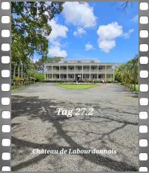 23.11. Ganz in der Früh starten wir los. Noch einmal über den Black River Nationalpark und dann nach Norden. Wir wollten auf dem Weg den botanischen Garten besuchen, haben uns aber wegen des Regens umentschieden und fahren weiten in Richtung Goodlands. Als Navigatorin habe ich immer GoogleMaps im Blick, da fällt mir ein grünes Fähnchen auf, das ich bei einem potenziellen Besichtigungsziel gesetzt habe, es liegt beinahe direkt auf dem Weg. Um so erreichen wir eigentlich ungeplant das Chateau Labourdonnais. Was für eine schöne Überraschung, beinahe wie ein kleines Schlösschen (erbaut 1854-59) in einem wundervollen Garten ist das Chateau liebevollts restauriert und der Öffentlichkeit zugänglich, ich dachte, es wäre privat und nur für Feste zu mieten (zum Video). Hier kann man auch den hauseigenen Rum verkosten, darauf haben wir verzichtet. Nachdem mich der Regen im Garten erwischt hat ziehen die Wolken etwas auf und wir gehen nochmals eine Rund bei Sonnenschein. Fazit laut Otto: "Da würden wir auch einziehen." (neu entdeckt) Pünktlich um 12 Uhr erreichen wir unser neues Domizil in Grand Gaube. Wir ziehen ein und dann ab nach Goodlands zum Inder essen, endlich wieder ein richtiges Thali. Noch ein kleiner "Sprung" ins Meer (das mit dem Springen ist symbolisch, denn hier ist es sehr seicht) und im Dauerkampf gegen die Gelsen ist der Tagesrest ansonsten zum Enspannen. _________________________________