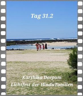 27.11. Heute geht es in den Osten, sozusagen unbekanntes Gebiet. Wir haben einen nicht allzu langen Weg und viel Zeit, also wollen wir von einem Strand zu anderen gondeln. Da sind wir gleich beim ersten Traumstrand überrascht, festliche gekleidete Hindus bringen Opfergaben ans Meer. Bald danach treffen wir auf Kirtagsstimmung am Strand, ganz ähnlich wie bei uns zu so manchen kirchlichen Festtagen werden gleichzeitig mit dem Lichtfest der Tamilen Standln aufgebaut und es herrscht ein sehr fröhliches Treiben. Zu Mittag erreichen wir unser letztes Ziel, das Riverside Home. Eine prachtvolle Wohnung um ganz wenig Geld, entzückende Vermieter, die selbst im Haus Wohnen und uns sogar täglich mit frischen Frühstückssemmerln versorgen. Einziges Manko - es wird schon wieder sehr heiß, auch in der Nacht. Na ein bisserl helfen da Klimaanlage und Ventilator. _________________________________