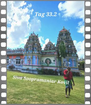 18.11. Heute haben wir viel vor, viel Schönes. Zuerst holen wir den Drohnenflug über den Hinduheiligtum Ganga Talao nach. Es beginnt mit Nebel, wir steigen trotzdem auf den Hanumanhill hinauf und starten los. Schöne mystische Bilder ergibt das. Wieder herunten kommt tatsächlich die Sonne durch, na nochmals hoch mit der Drohne. Weiter geht es durch die Cyber City, dem Siliconvalley von Mauritius, wieder nach Moka. Wir sind so begeistert von dem Flair der Villa Eureka, dass wir dort einfach ein paar Stunden verbummeln möchten, Bücher und Gelsenspray haben wir mitgenommen. Den Abschluss bildet ein herrliches Menü auf der Terrasse des beinahe 200 Jahre alten Herrenhauses (zum Video). _________________________________